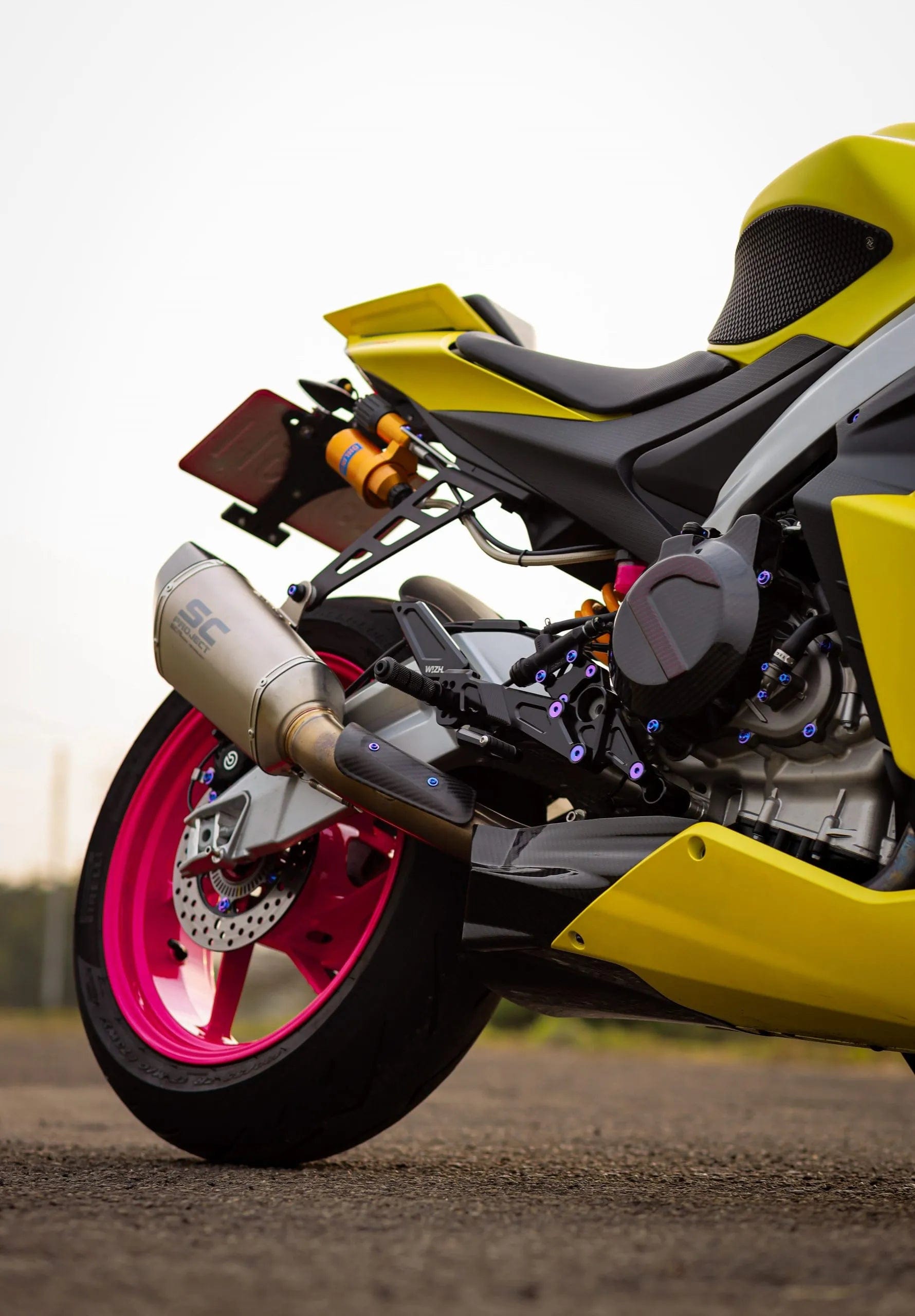 For this one of the most eye-catching models on track, the appearance of the exhaust protection also gotta be as beautiful and furious as the motorcycle itself.
