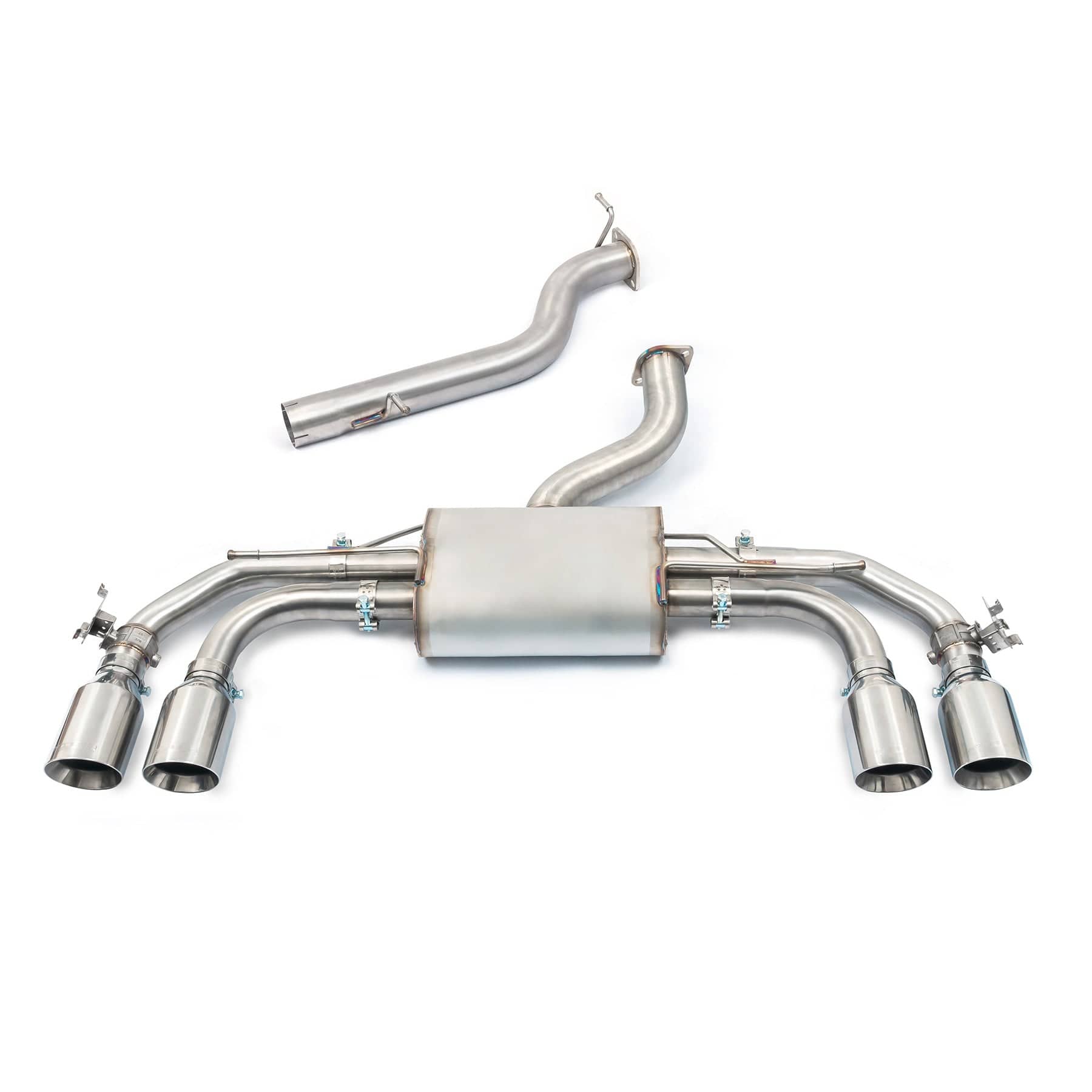 Cobra Sport performance exhausts enhance the sound, looks and quality of your vehicle giving you the ultimate driving experience.Our sports exhausts range is fully guaranteed to give you assurance of our quality.This Cupra Formentor performance exhaust is made in 3"/76.2mm pipework and fits from the GPF section backwards (GPF-back), this exhaust replaces the centre and rear sections. The resonated exhaust includes the centre silencer and has a more subtle sporty tone. This exhaust however, is also available with a non-resonated centre which is the louder option as it excludes the centre silencer and therefore, has a sportier exhaust note.This race exhaust version includes a sportier rear silencer for a more powerful sound upgrade.Race GPF Back (Valved Non-Resonated) Performance Exhaust Test Results - Cupra Mode:Sound - Engine at Idle: 73.2dB (+12.2dB) - Static 3,800rpm test: 87.8dB (+10.1dB)Race GPF Back (Non-Valved Non-Resonated) Performance Exhaust Test Results - Cupra Mode:Sound - Engine at Idle: 68.5dB (+7.5dB) - Static 3,800rpm test: 90dB (+12.3dB)Cobra Sport Race GPF-Back (Valved Non-Resonated) Weight: 18.3kg (-1.75kg)Please Note:The 'Valved' exhaust retains the use of exhaust valves. When switching drive modes (e.g. Comfort to Cupra mode) your exhaust tone will continue to swap from quieter to louder tones as before.The 'Non-Valved' exhaust removes the use of exhaust valves. When switching drive modes (e.g. Comfort to Cupra mode) your exhaust tone will not change from quieter to louder as before. Using a Non-Valved exhaust will not harm the running of your vehicle, you will simply not have exhaust sound options, however the Cobra Sport exhaust has been designed with this in mind.All relevant fittings and gaskets are supplied.