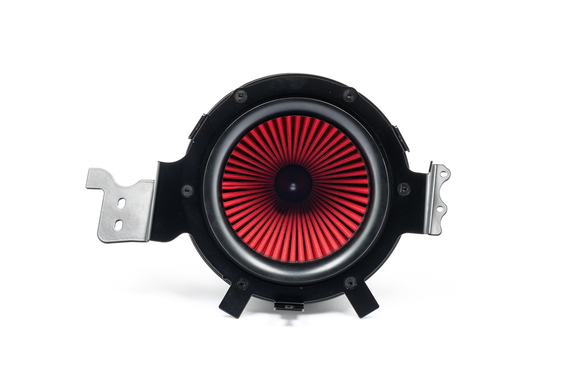 The filter housing is sealed to our carbon air duct which locates into the OEM cold air feed behind the rear wing. This is an excellent air feed since it is very direct and by sealing the duct to our filter housing we ensure inlet air temperatures remain minimised.